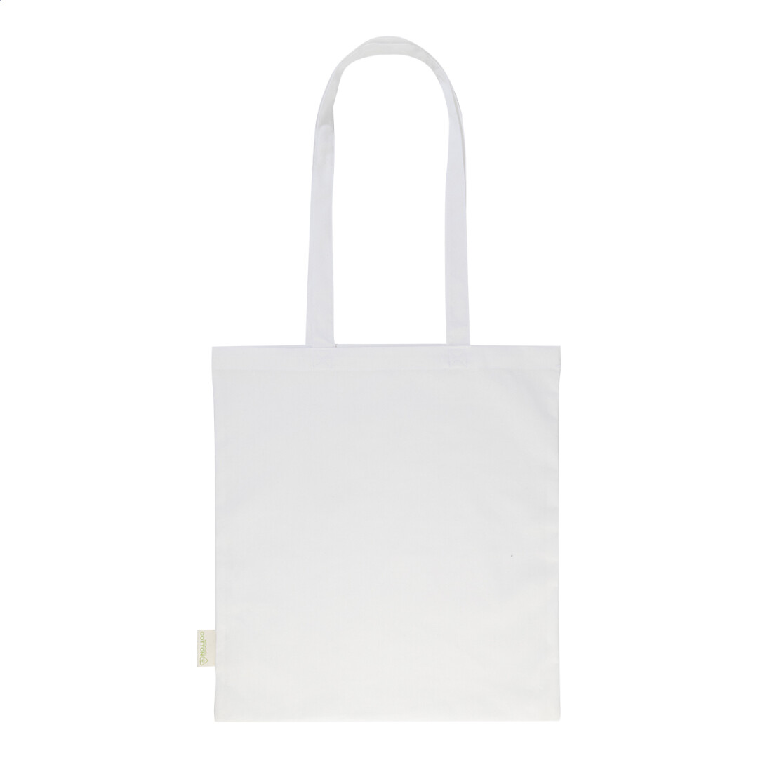 Canvas shopping bag with long handles. 270 gr/m². This tote is perfect for daily groceries or other shopping activities. It's available in various colours. Carry the bag over your shoulder when it's heavy and to keep your hands free. Carry weight limit: 7 kgs. This product is OEKO-TEX® STANDARD 100 certified.