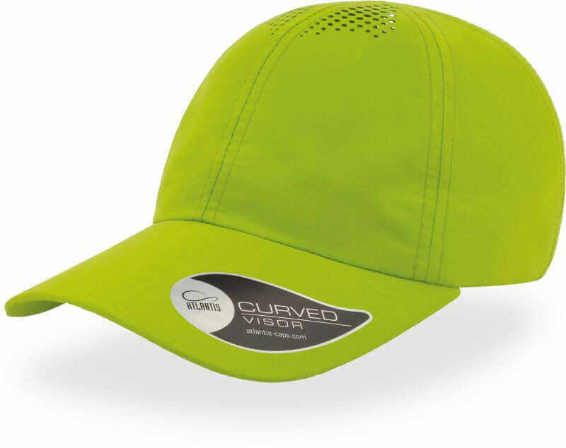 6 panel Air baseball cap. 90g/m², 100% polyester. Sticker on shield, pre-shaped shield, polyester sweatband, laser eyelets, Velcro closure.