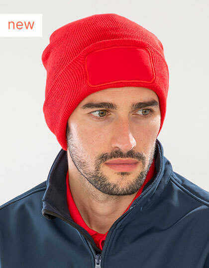 Cap with recycled polyester yarn cuff | Soft to the touch, double layer fabric and flat machine finish | Reflective strip on the cuff for high visibility.