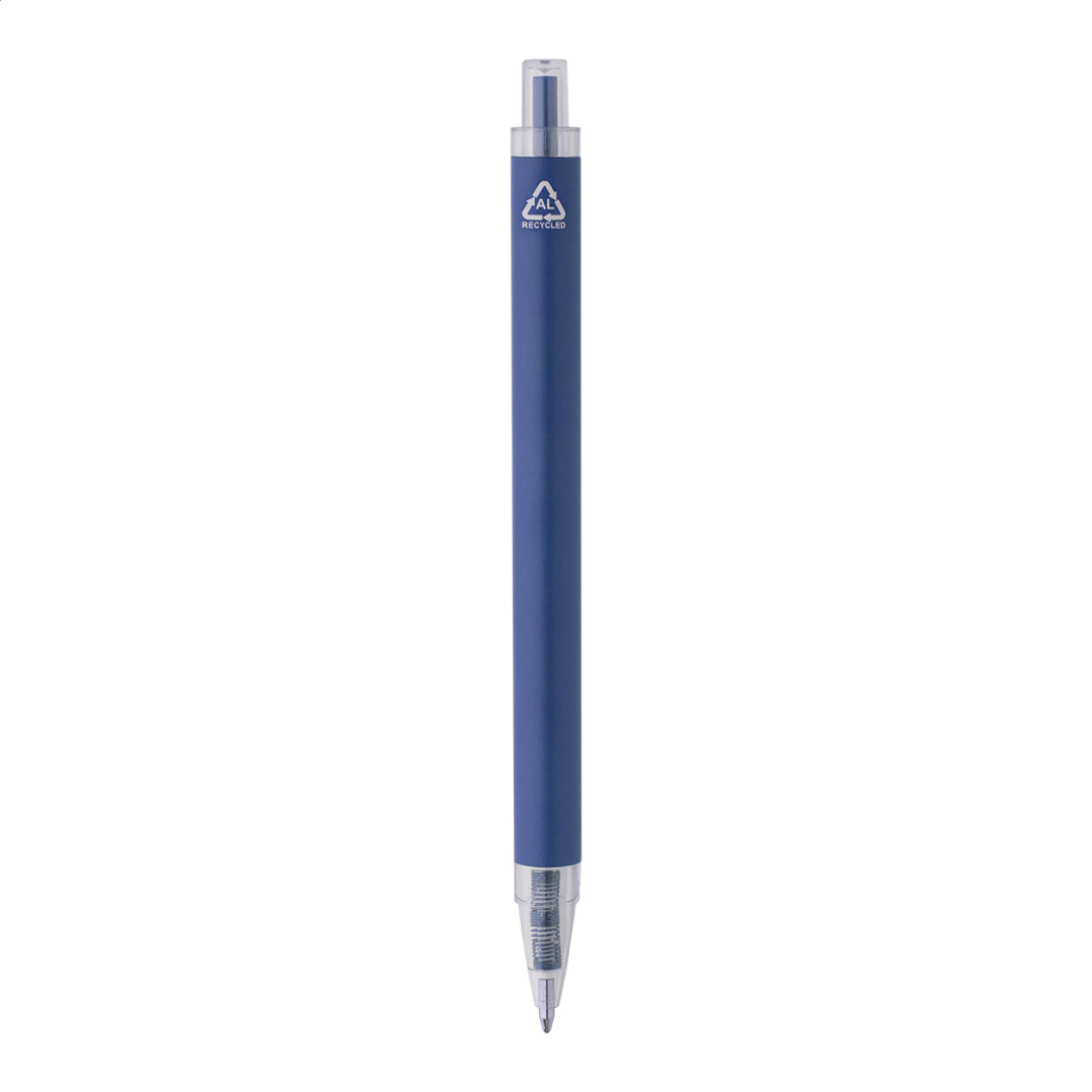 Pogumované guľôčkové pero z recyklovaného hliníka a modrou Semi-Gel náplňou. S hrúbkou hrotu 0,5 mm je písanie tenké a stále jemné.