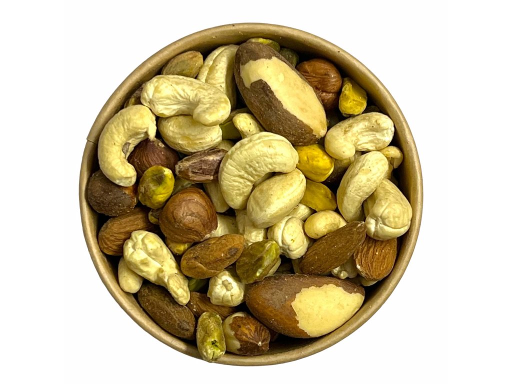 Enjoy a combination of the most popular salty nuts - salted almonds, smoked almonds, salted cashews...