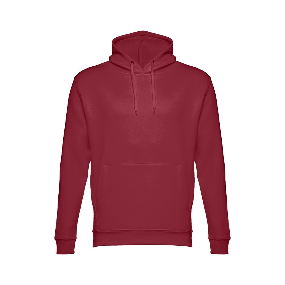 Hooded sweatshirt (unisex) in 50% cotton and 50% polyester (320 g/m²) with carded interior. The hood includes eyelets and fastening cord in matching colour. Sweatshirt with marsupial pocket and 1x1 Rib on the cuffs and waistband. Sizes: XS, S, M, L, XL, XXL