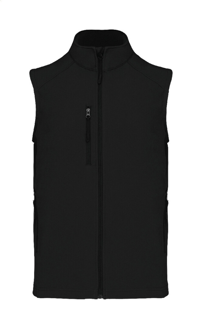 Breathable, waterproof and windproof RPET softshell zipped vest with chest and side pockets. Outer side: 92% polyester RPET and 8% elastane. Inside: 100% RPET polyester micro fleece.