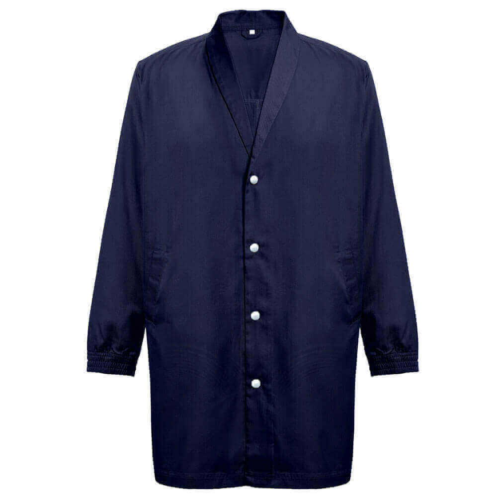 Unisex workwear smock. 20% cotton and 80% polyester: 190 g/m². Stylized collar. Sleek and stylish cut with 2 side pockets. Elastic cuffs. Closes with snap buttons. Back opening for better freedom of movement.
